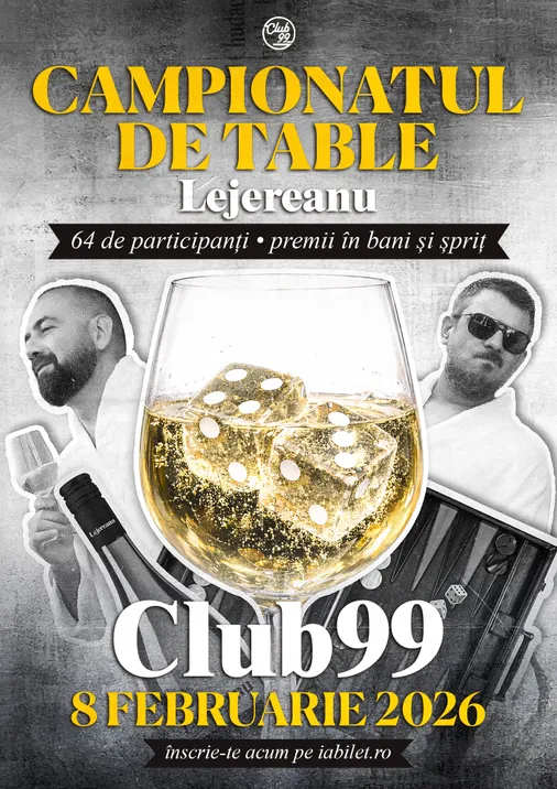 Fiecare bilet cumparat înseamnă o persoana înscrisă în campionatul de table Lejereanu. Înscrierile în acest eveniment se fac pe iabilet, în limita locurilor disponibile, până pe data de 6 februarie (este într-o vineri, nu marți) la ora 10:00.