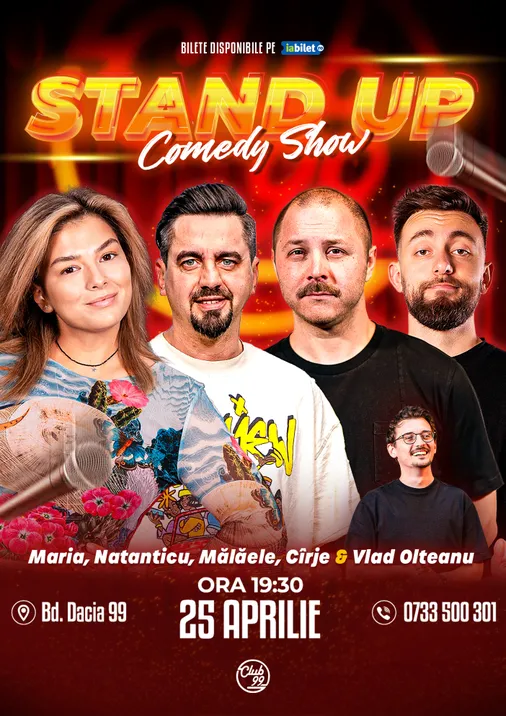 Vă așteptăm la o seară de stand-up comedy alături de Maria Popovici, Natanticu, Mălăele, Cîrje - Vlad Olteanu