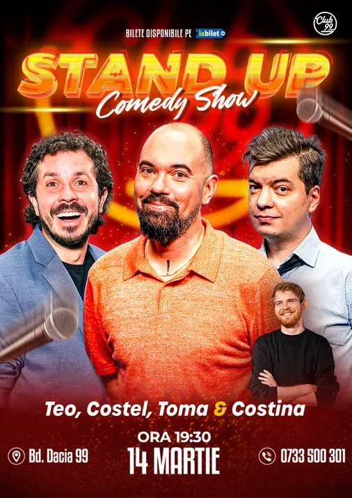 Vă așteptăm la o seară de stand-up comedy alături de Teo, Costel, Toma - Tudor Costina