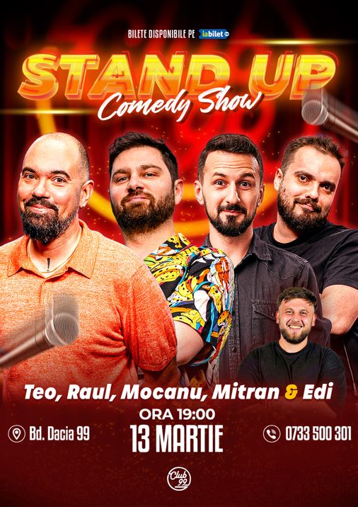 Vă așteptăm la o seară de stand-up comedy alături de Teo, Raul, Mocanu, Mitran - Edi Rădoiu