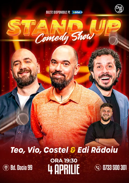 Vă așteptăm la o seară de stand-up comedy alături de Teo, Vio, Costel - Edi Rădoiu